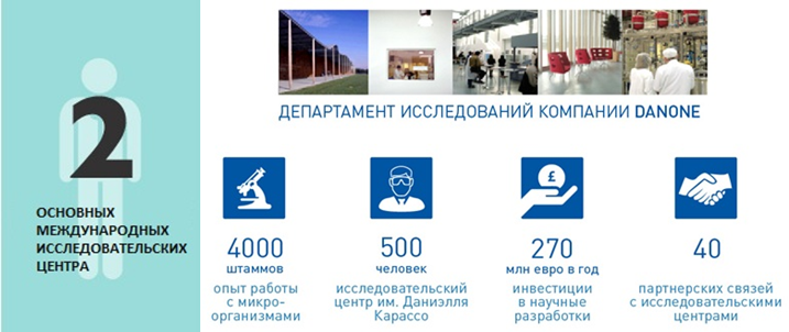Danone — уникальная компания, благодаря тому, что, являясь производителем продуктов питания, также располагает научной базой, которая позволяет производить не только вкусные, но и полезные продукты.